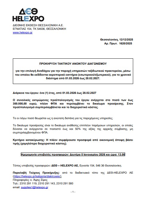Διαγωνισμός ταξιδιωτικού πρακτορείου για έκδοση αεροπορικών εισιτηρίων
